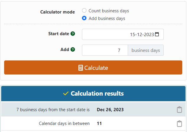 Step 2- Select the date on which refund was initiated and then write 7 in front of Add and click on calculate.