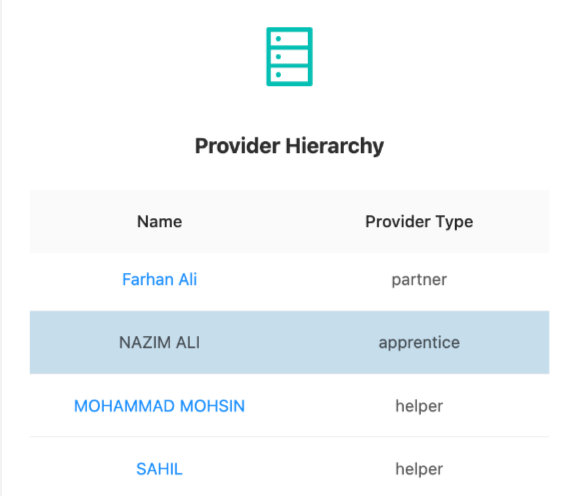 Go to provider profile >> Scroll Down to Provider Hierarchy.